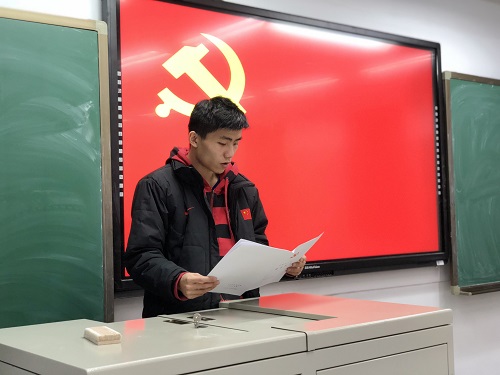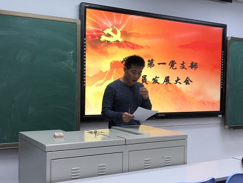 大会在雄壮的《国际歌》中拉开帷幕,按照组织流程,经过宣读入党志愿书、入党介绍人发表意见、正式党员无记名投票等环节,一致同意8位同学的入党申请,由王鹏老师宣读支部决议并提出要求,希望8位同学戒骄戒躁,发扬党的优良作风,严格要求自己,在同学中继续做好模范带头作用。