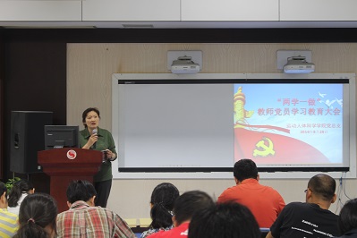 会上,党总支书记李荷进一步阐明了“两学一做”学习教育的重要意义,明确指出了要重点解决的九个方面的问题,对如何做一名合格党员提出了具体的要求;另外,对学院党总支学习教育实施方案和各阶段任务进行了说明,并就如何使用好学习手册以及第二阶段正在进行的党章的学习提出了具体的要求;最后,要求全体党员要做到“六个坚持”,注重实际效果,做到真学实用,把学习教育开展好。