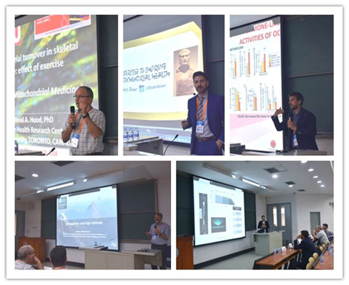 在论坛第一单元的学术交流中,来自澳大利亚的David J. Bishop教授作了题为"Exercise to improve mitochondrial health"的报告,他和他的团队对研究对象做了四种不同类型的训练,分别是Pre-Normal Training,Post-Normal Training,Post-Intensive Training,Post-Reduced Training,发现第三组受试者骨骼肌内的线粒体最为活跃,说明Post-Intensive Training最为有效。来自加拿大的David Hood教授作了题为"Mitochondrial turnover in skeletal muscle: effect of exercise"的报告,他指出运动使线粒体数量增多与线粒体循环中Parkin蛋白增多有关,并且随着年龄的增长,蛋白质进入线粒体基质的情况没有改变。来自西班牙的Jose Antonio Lopez Calbet教授作了题为"Free radicals: exercise and health: an integrated perspective"的报告,综合地向我们展示了自由基在体育运动中的功能。
