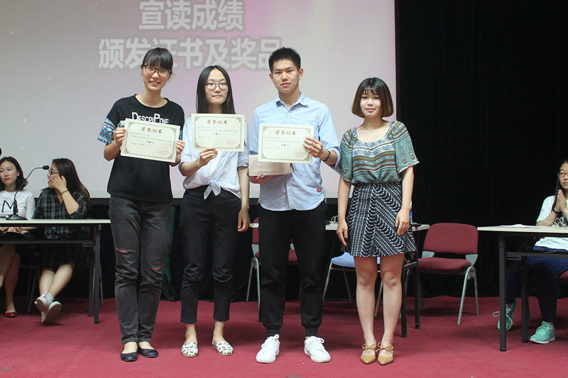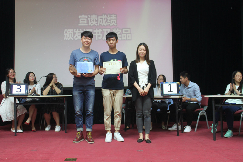 在22支参赛队伍中,尼斯湖火锅队、我队、三只松鼠队、六棵柳树扭六扭队经过初赛、复赛两轮脱颖而出,进行了决赛。从开始的主题作答,从体育知识、学习知识、生活百科几个方面全面考验了选手的知识面;预热赛成语接龙,展现了选手们的文学储备与思维反应能力;到你画我猜,考验选手的理解、表达能力与相互之间的默契程度;再到最后最强两队之间的答题对决,高潮迭出、精彩纷呈。两轮观众提问更是将全场气氛带到最高点。最终我队、尼斯湖火锅队分获第三、四名,三只松鼠队得中榜眼,六棵柳树扭六扭队荣誉登顶。学生会副主席洪心怡、董晓晴、王鹏老师依次为他们进行颁奖并送上礼品。