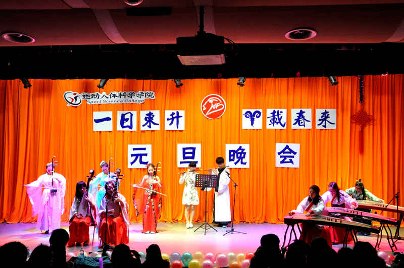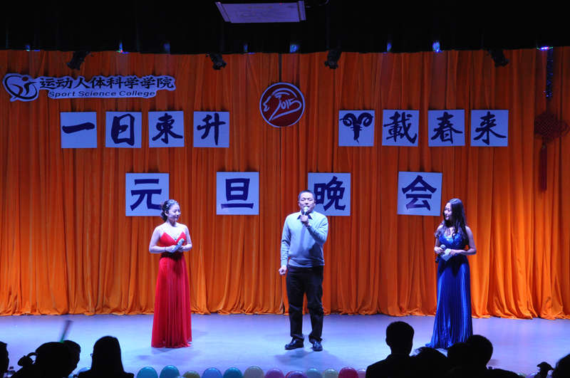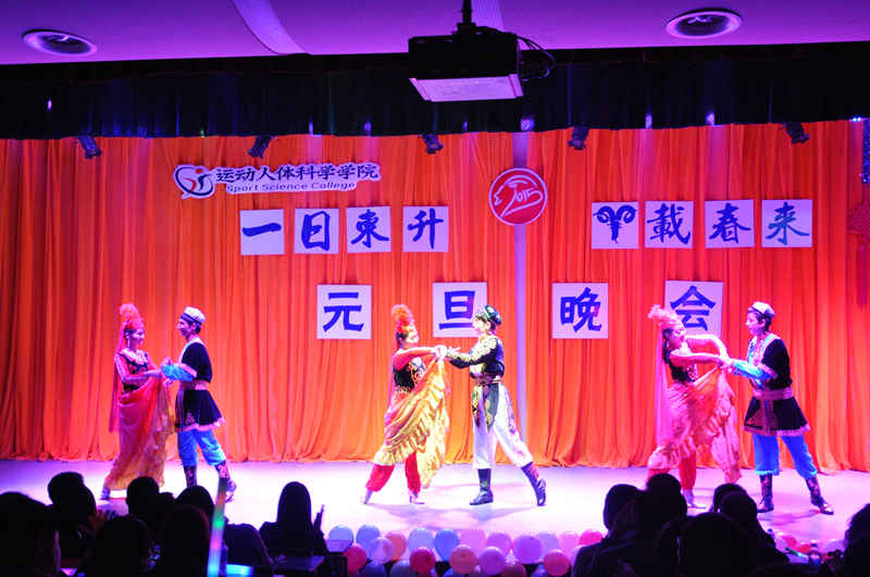 晚会节目丰富多彩,相声、话剧、小型乐团等表演各具特色,精彩纷呈。首先,民乐组曲《指间江湖》拉开了晚会帷幕,接着王瑞元院长为晚会致辞,为老师和同学们送上了新年的祝福。在随后的节目中,新疆舞《gulbag》体现了浓浓的民族风情,歌曲串烧《四时如歌》欢快动听,小品《北体达人秀》更是获得了台下阵阵掌声和欢笑声,两段风格迥异的现代舞《Be nature》和《Happiness》展现了同学们不一样的活力……