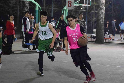 下半场易边再战,15人2顶住压力开始反击,经过几次外线传导后,15人2宋奕晨接队友回传,果断出手,投进一记3分球,15人2替补席一片欢呼。最后一节,双方各有调整。两队攻守交替频繁,防守激烈,进攻成功率都不高。比赛进行到最后两分钟,17人2田黎恒发底线球,给在底角三分线要位的钱澄,钱澄接球直接投篮,三分球进。紧接着,15人2宋奕晨在弧顶又还了一记三分。还剩20秒时,双方比分打平,田黎恒在三分线接钱澄传球和对面防守队员一对一,试探步后向三分线内一步急停跳投出手,球进,17人2领先2分,最终将比分定格在39:41,17人2胜。