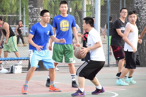 男篮的比赛在6号场举行。第一节比赛由大四毕业生联队对战大二大三联队,大四焦裕博接队友马人杰传球上篮得分首开纪录。随后大二的王天放回敬一记三分,此后双方攻防转换频繁。首节最后时刻,大四联队王鹏老师与马人杰默契配合拿下两分。第一节比赛结束,大四联队24:18暂时领先。第二节比赛由大四联队对阵大一联队,大一的钱澄和地力木拉提带领球队打出一波小高潮,大四联队倪彬和焦裕博同样表现不俗,最后一分钟大四刘政宇和焦裕博分别命中一记三分,全场为之沸腾。