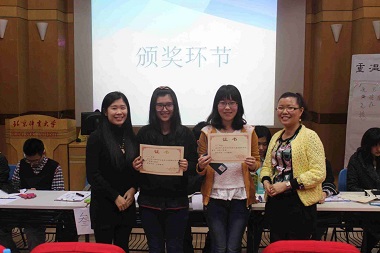 比赛分为听写题、成语填空、汉字十三宫和猜字谜四个环节,每班的两名代表为一组。选手们才华横溢,机智过人,在难题面前也能及时作答,为自己的队伍争取到宝贵的得分。第四节字谜抢答尤为精彩,不仅选手们积极抢答,台下观众也参与互动,同学们一度将比赛的气氛推向高潮。在第三环节和整场比赛结束后项英老师与贺吉庆老师分别作了精彩的点评。最终2014级心理班夺得桂冠,2013级人体1班和2014级人体1班荣获二等奖,2013级心理班、2013级人体2班和2014级人体2班获三等奖。