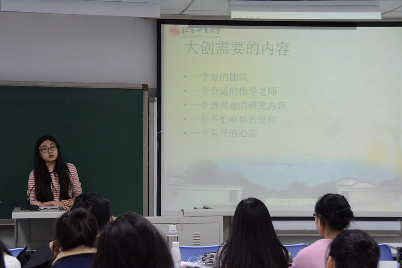 交流会由15级心理班刘同语主持。首先,连续3年获得国家励志奖学金、保研中科院的李府桂描述了从“大一广涉猎”到“大二渐清晰”再到“大三精定位”的学习过程并提出关于保研的建议。接着,王郑含笑与吕文琦则结合自身经历,详细的分享了她们申请大学生科研创新计划的成功经验。随后,受邀前来的北京师范大学心理学院的张文菊以生动的语言分享了学习心理学的技巧,并在之后的问答环节阐述了自己申请大创的经历以及对学弟学妹的建议。最后,赵岩老师对本次活动进行总结,并对同学们的相关问题进行解答。