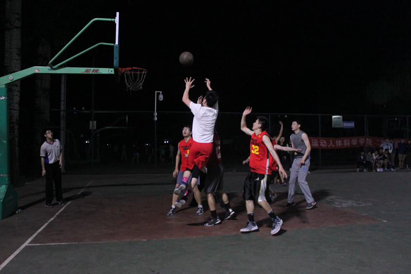 另一场是男子的12级心理班VS硕博联队,开球后双方迅速进入状态,首先硕博联队李华庆带球突破一条龙,急扑篮下,单手上篮,拿下开场第一球。紧接着12心理田海远在荣恰的掩护下成功突破,急停跳投拿下两分。而后硕博联队在李华庆的带领下组织轮番的快攻,李华庆砍下6分,第一节结束,双方比分为7:11,硕博领先。第二节开始后,荣恰接赵天罡急传,转身起跳篮下反勾,拿下两分。硕博联队再次展开大强度进攻,最后李华庆一个三分急停跳投收尾,本节李华庆单人斩获7分。第三节第12分钟,在对方快传配合打得火热之际,田海远紧盯对方,抢断后单手上篮,砍下两分。第四节第9分钟,硕博刘祚良在李华庆、邱平学的掩护配合下,成功突破至篮下,上篮得分。最终,硕博联队47:23战胜12级心理班。