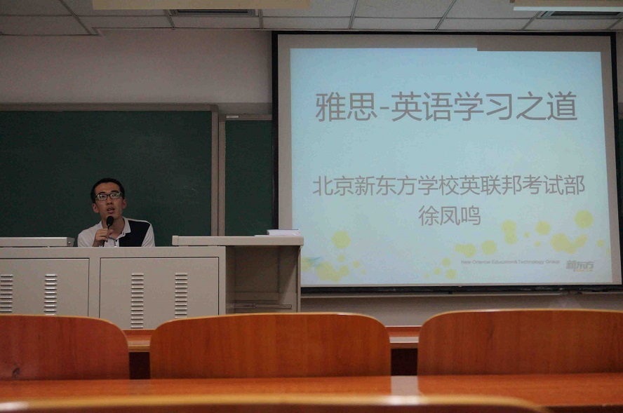 4月24日晚19:00,学院在教学楼415教室举办新东方雅思备考专题讲座,担任本次讲座主讲人的是来自新东方学校雅思名师徐凤鸣。