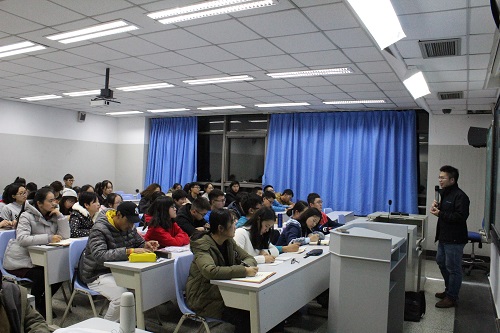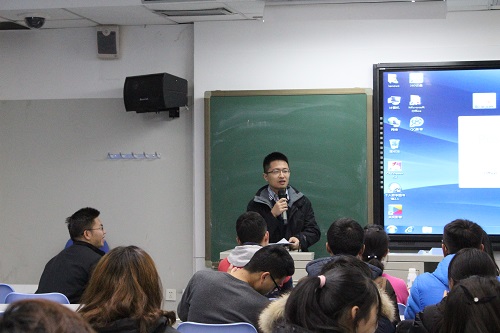 班会开始后,周财亮老师首先浅谈自己的大学生活,告诉同学们大学生活很有意义,完全不同于高中生活,充满了趣味,能完成自己想做的事情。他谈到大学生应该充满激情,人可以迷茫,但一定要有一颗上进的心。周老师在谈到研究生学习时期,他认为找到一个好的导师非常重要,好的导师能给安排好科研任务,给自己明确的发展方向。当他谈到博士发展时期,忠告我们要思考清楚再选择读博,同时引用北大校长的话:“读博只有时间非常短暂的快乐,大部分时间都在下一阶段的准备之中。”