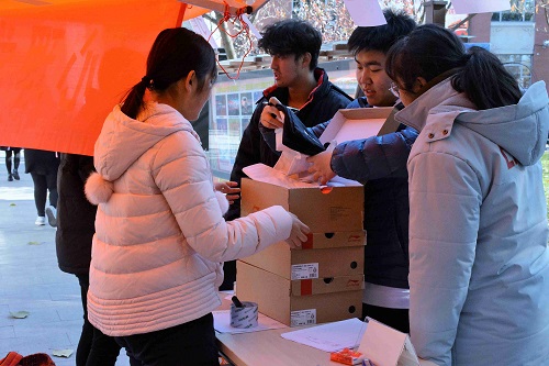 院学生会生活部跟中国滋根乡村教育与发展促进会联系,合作举办此次活动。捐献的衣物将通过中国滋根乡村教育与发展促进会转送到有需要的农民工们手中。活动当天虽然寒风凛冽,但因为同学们的爱心,募捐点却显得分外温暖。随着活动的进行,越来越多的同学和老师参与到活动中。与此同时,生活部在5号和13号公寓楼一楼分别设置了募捐点,由成员轮流值班,登记并整理同学们送来的衣物。虽然捐出的只是普通的衣物,但每一份捐赠都彰显着我校学生的爱心。