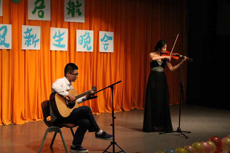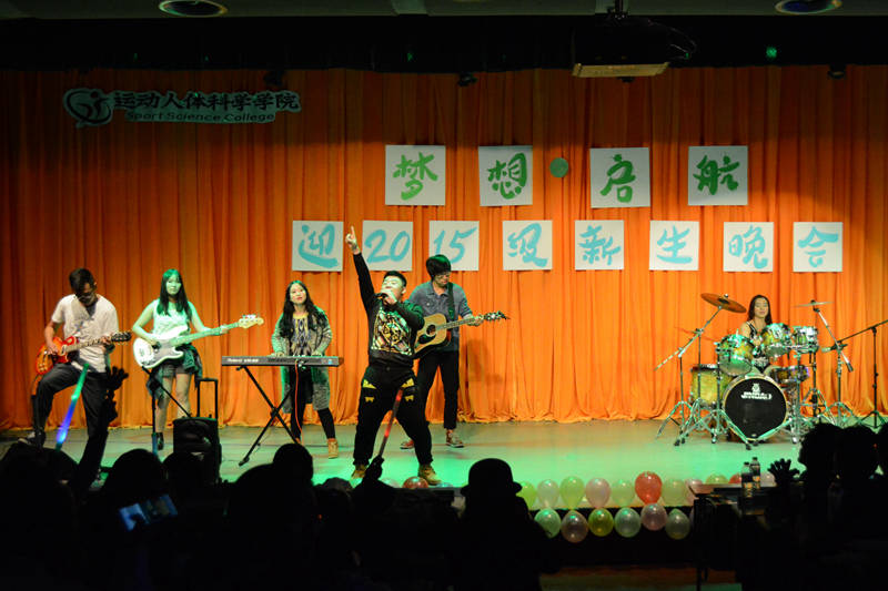 灯光变暗,开学以来的一幕幕在荧幕上闪过,宣传部精心制作的短片将大家带回了初入大学的那段时光。紧接着来自荆棘谷乐队的《一起摇摆》迅速点燃全场,满场欢呼中,邹英皓、王一多、鲁典、刘卓林四位主持人靓丽登场,晚会正式开始。尤克里里演奏《弹唱青春》的乐声扬扬带着晚会缓缓走向高潮。接下来的脱口秀《开学第一天》风趣幽默,喜感满满,头上“长草”的两位演员结合了方言和潮言潮语,以丰富的动作形象的展现出了新生对于大学生活的适应过程,“今天这水龙头有点狂躁啊”、“这脸型,真是‘大连、太原’”等等,满口的东北方言让场下笑声不断,掌声如潮。诗朗诵《雁又何往》伴音乐而起,琴声笛韵悠悠袅袅,舞一席衣袂飘飘,不知牵起场下人几缕思乡。爵士舞《shaking box》,情深悠长的音乐剧《我心永恒》,打动全场的吉他弹唱《南山南》,还有充满青春朝气的歌曲串烧《追梦之路》……整场晚会高潮迭起,精彩纷呈。观看搞笑花絮后,全体嘉宾、演职人员上台合影留念,为晚会留下了完美的句号。