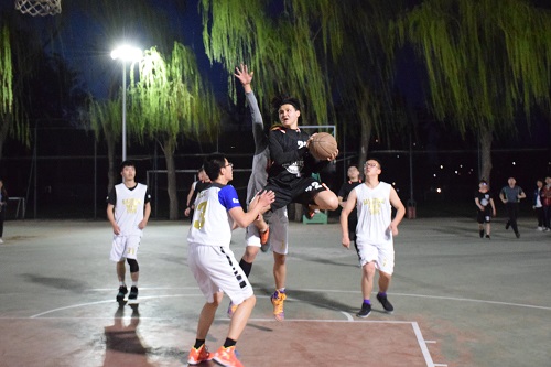 4月10日晚19:00,学院篮球联赛在篮球外场继续举行,今天有两场比赛,分别在5号和7号场进行。