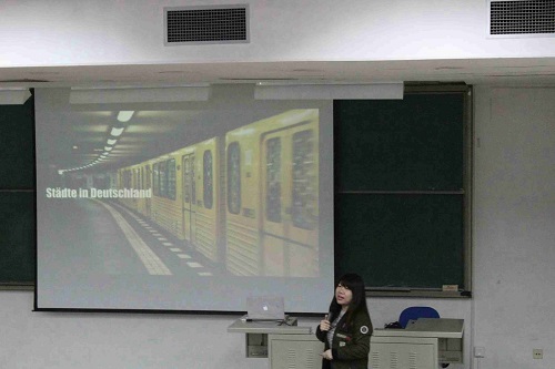 为帮助有意愿去德国留学的同学,更好的了解相关信息,提前做好留学准备。12月6日晚7点,运动人体科学学院学生会于114教室举办了"德语文化与德国留学规划"讲座。本次活动由院团总支、学生会主办,院学生会外联部承办,主讲人为新东方德语教师杨琳老师。