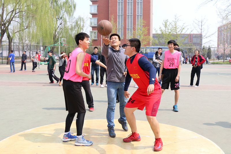 4月10日中午12点30分,“学院杯”篮球联赛的战火在篮球外场重燃。本次联赛由我院团总支、学生会主办,体育部承办。11、14级辅导员王鹏老师、院团总支书记赵岩老师出席比赛开幕式。