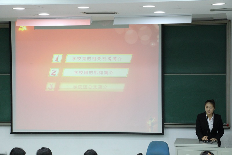 担任本次大会主持人的是我院学生会副主席李美瑶。首先,我院学生会副主席徐宇佳对校学生会进行了简单介绍;副主席刘政宇、焦怡然、主席刘金一分别对校红十字会、学生社团和院学生会做出详细讲解与比较,并鼓励大家踊跃参加各种学生组织,充实大学生活;院报主编、副主席姚诗语对院报进行介绍;团总支副书记张环宇对党、团委的机构设置以及组成人员进行了简要讲解,并对我院团总支进行了专门介绍,使全体新生对学校及学院的党、团机构有了基本的了解。新生们纷纷记录并进行了交流。