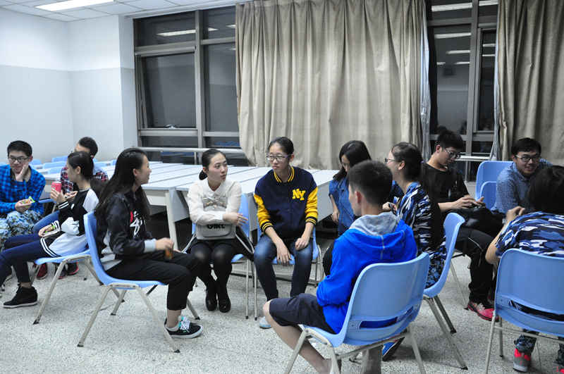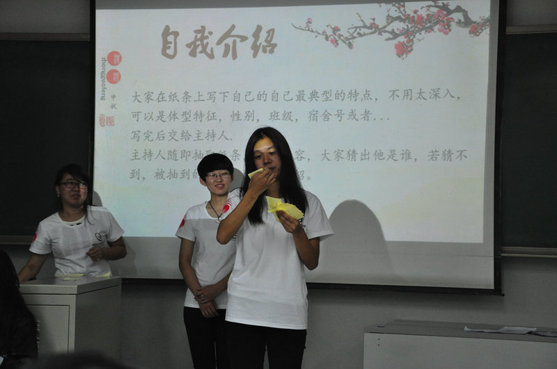茶话会共分为10个阶段,大家首先进行自我介绍并分组,然后开始游戏。首先是“七拍小爪八瞪眼,十五的月亮十六圆。”这个小游戏充分考验了同学们的反应速度,失误的同学最后一起受到了“惩罚”。接下来还有幽默刺激的“五毛一块”、“卡拉永远不KO”等等。游戏结束后,生活部两位部长与宿舍长们分享了一些模范宿舍的照片,展示了宿舍检查规定表,并对以后的宿舍生活提出了宝贵建议。
