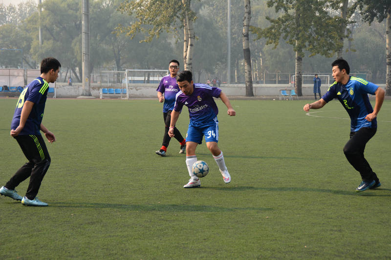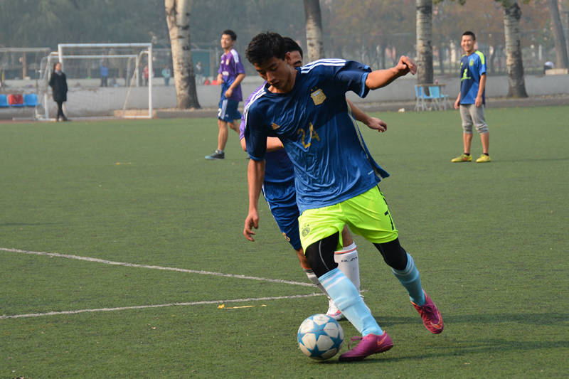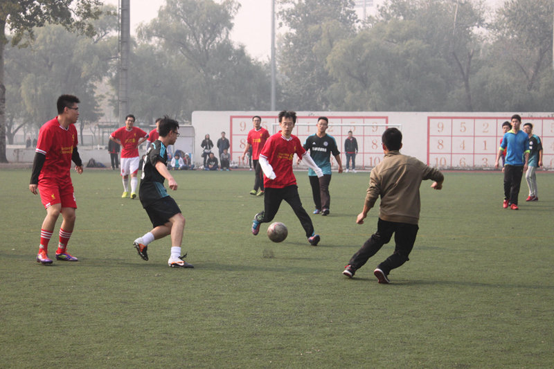 两场比赛同时进行。12级人体2班和14级人体1班在北半场,两队势均力敌,从一开场就相持不下。第30分钟,1班获得一次角球机会,但被2班门将彭浩然扑出。上半场结束,双方0:0战平。下半场双方调整人员后进行了另一轮拼杀,终场哨吹响前,2班宁旭琛杀出重围形成单刀,以一记射门锁定胜局,最终12级人体2班1:0战胜14级人体1班。在南半场进行对决的是12级人体1班和14级人体2班。2班虽然一开场就展开强大攻势,但他们并没有撕开1班强大的防线,上半场双方均无进球。易边再战,2班艾山梅开二度,先是头槌破门,45分钟时他又一过三将球推射入门。1班组织了多次极具威胁的进攻,只有蒋中业门前大力抽射,扳回一城。之后,2班焦裕博再入一球,将比分定格为3:1。
