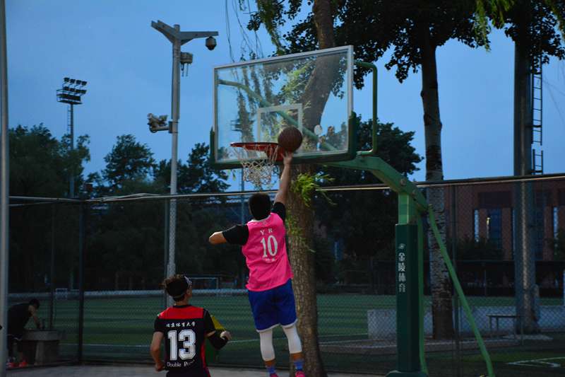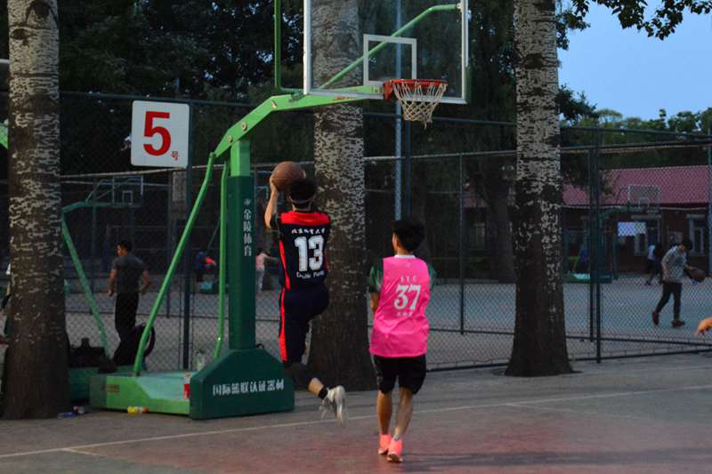 5月3日,篮球联赛淘汰赛在篮球外场如期展开。