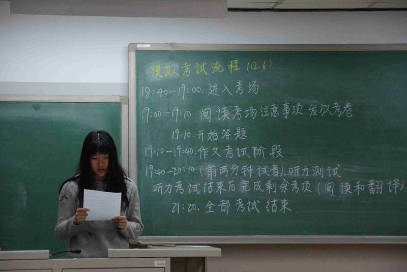 为了让同学们更好的备战英语四级考试,12月6日晚7点,我院于教学楼412、413教室举办了英语四级模拟考试。本次活动由我院团总支、学生会主办,学习部承办。
