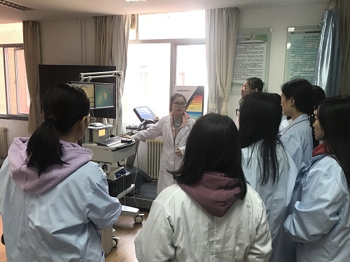 陈贻珊向博士新生们重点讲授了德国cortex metalyzer 3B气体代谢测试仪的测试原理与方法。该气体代谢测试仪是目前体育领域常用的气体代谢自动分析系统,采用每次呼吸测量法,对呼吸运动过程中气体的流量、O2的浓度、CO2的浓度及环境的温度、气压、心脏参数等技术参数进行实时数据采集,通过专业的分析软件,采用不同的分析方法来测量人体的心肺功能、肺活量指数、基础代谢率、脂肪代谢,进行营养评估,心肺功能预警等。因此,Cortex在运动生理学的研究、医用诊断与临床研究、康复及健身的评估等多个领域有广泛的用途。